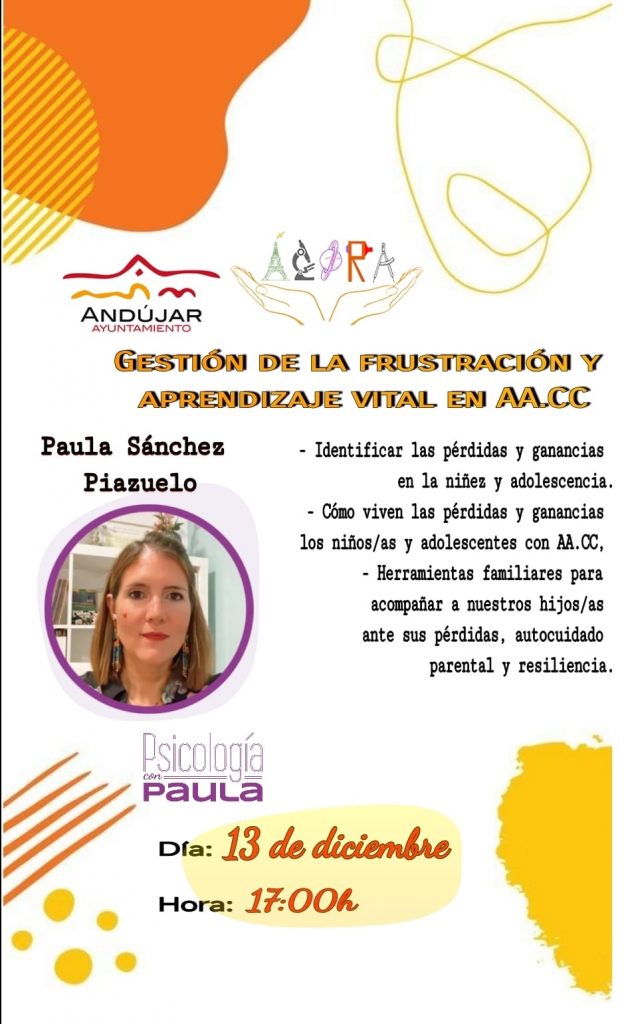 Charla del 13 de diciembre. GESTIÓN DE LA FRUSTRACIÓN Y APRENDIZAJE VITAL EN AACC. Por Paula Sánchez.