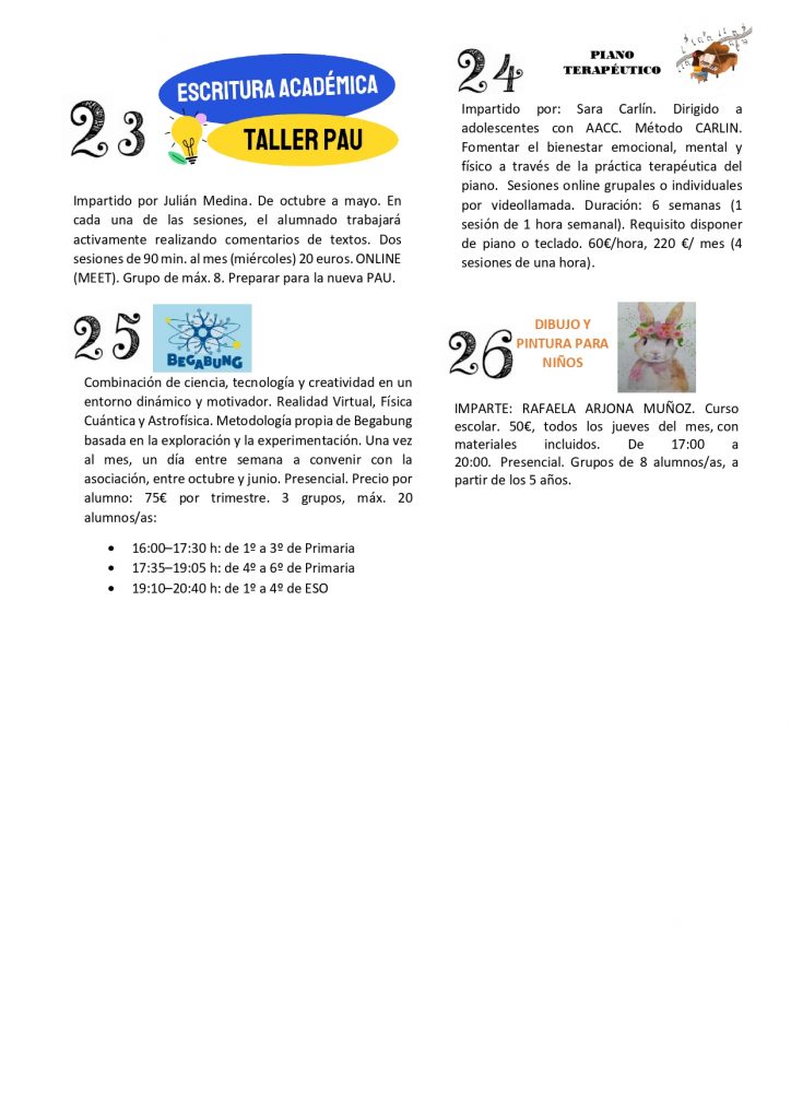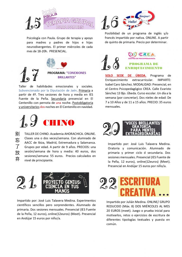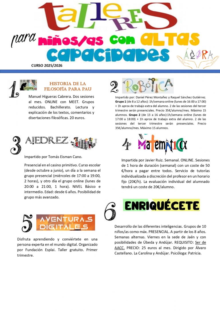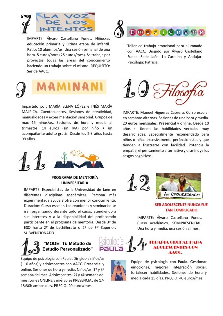 - Organizados por la Federación Andaluza de Altas Capacidades de forma online y presencial en campamentos de verano.