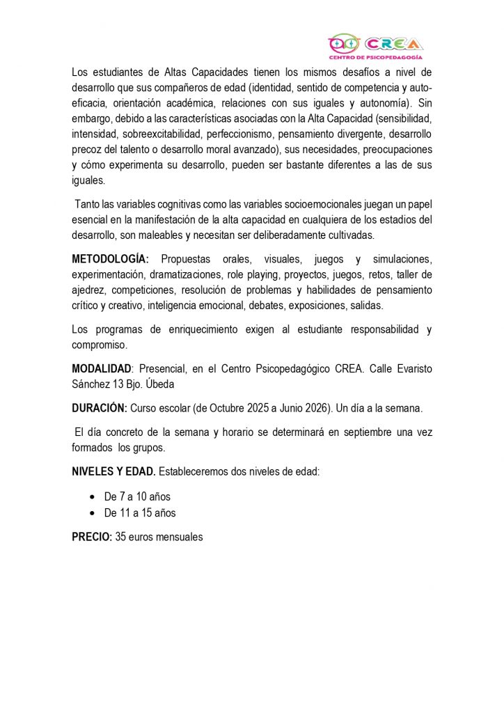 • Taller – «CREA» Enriquecimiento extracurricular